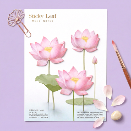 Appree Leaf Sticky Memo Notes - Pink Lotus